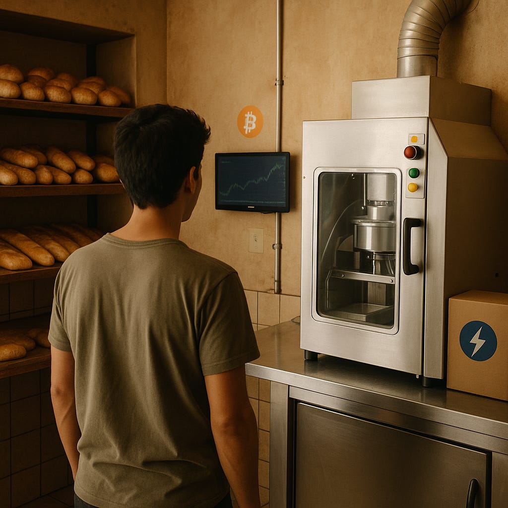 Dos años después heredó la panadería familiar, golpeada por la inflación y la imposibilidad de modernizarse durante décadas. Con BTC como colateral, y sin pasar por un banco ni aceptar condiciones abusivas, pudo adquirir su primer equipo nuevo.