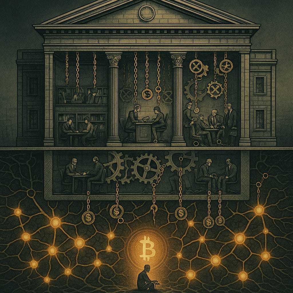 Vivimos rodeados de estructuras de poder que no cuestionamos. Gobiernos que deciden por nosotros, bancos que custodian (y condicionan) nuestro dinero, tecnócratas que legislan sin voto, y algoritmos que dictan lo que vemos, compramos o creemos. En medio de esa red invisible pero omnipresente, emerge una tecnología que no solo propone una alternativa, sino que encarna una ruptura: Bitcoin.